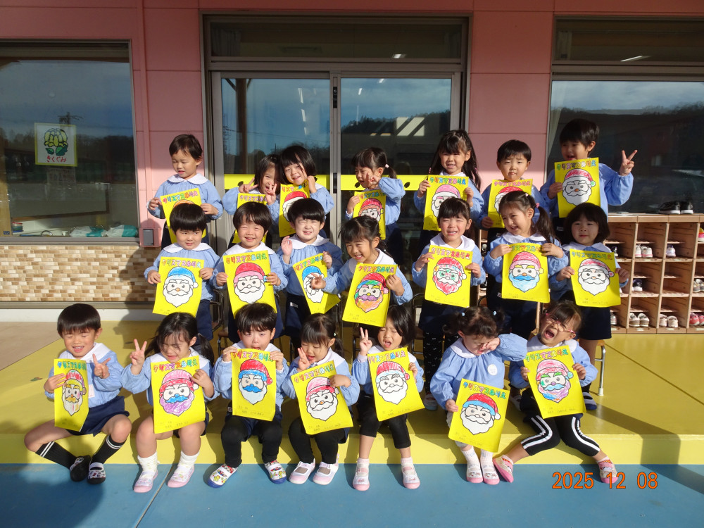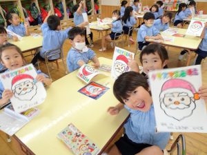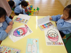 さくら保育園のお隣にあるファミリーマートいわき好間店さんより、この度、「さくら保育園の園児さんたちにサンタの塗り絵をしてほしい」との依頼があり用紙をいただきましたので、3歳児クラス以上(3クラス)の子どもたちが塗り絵をしました。
