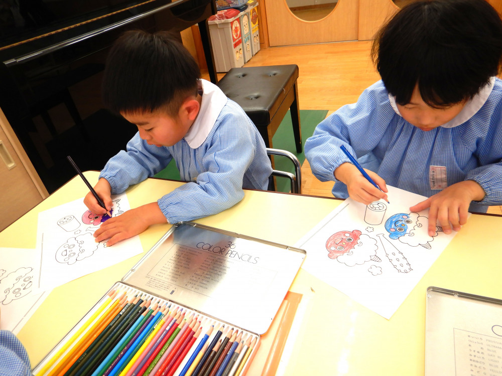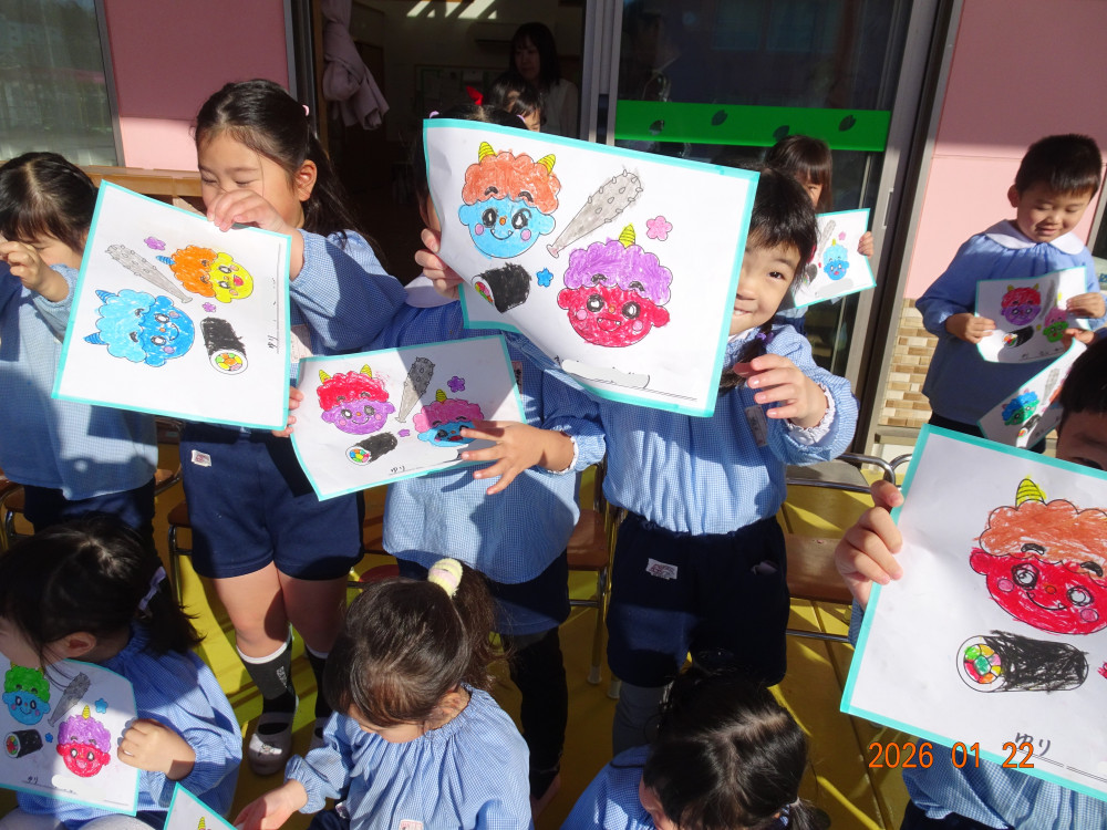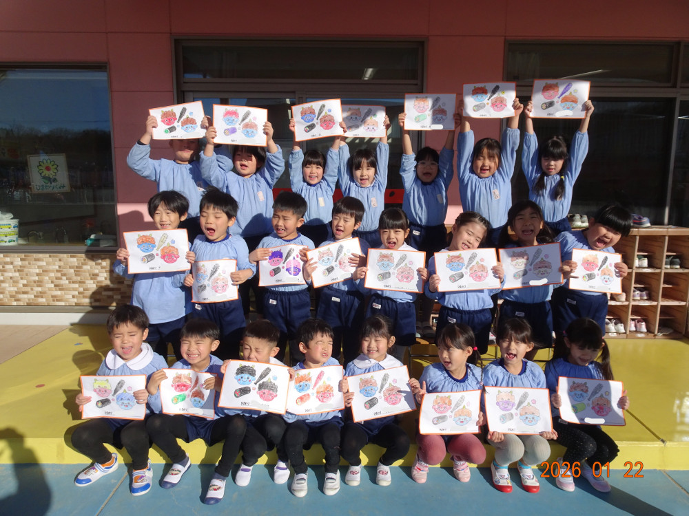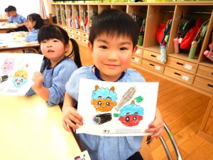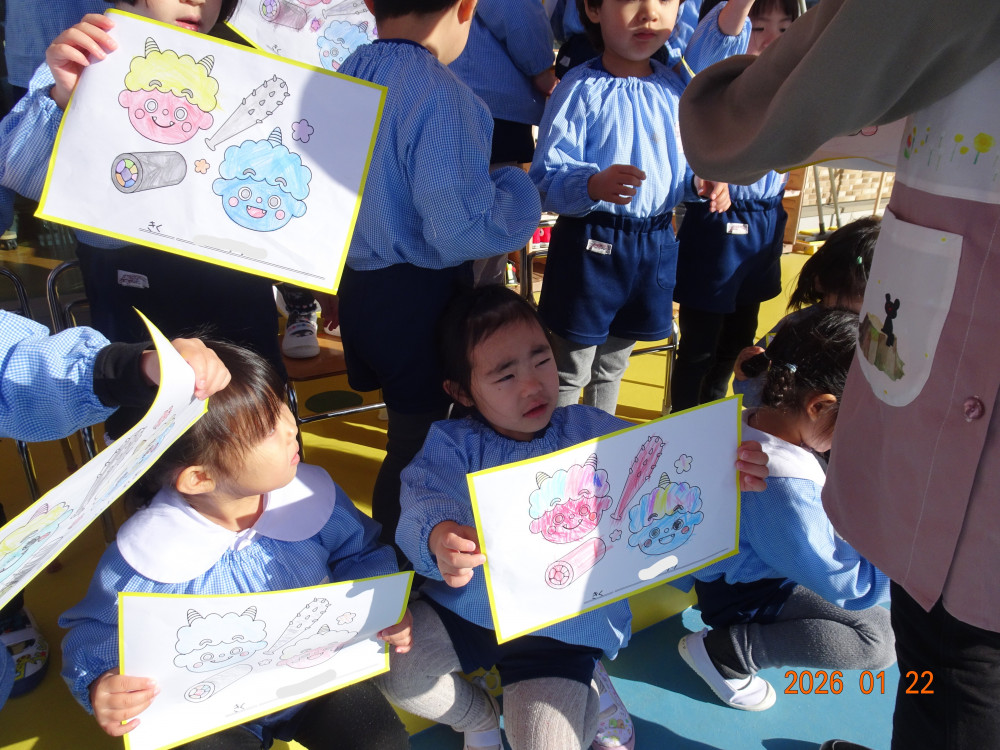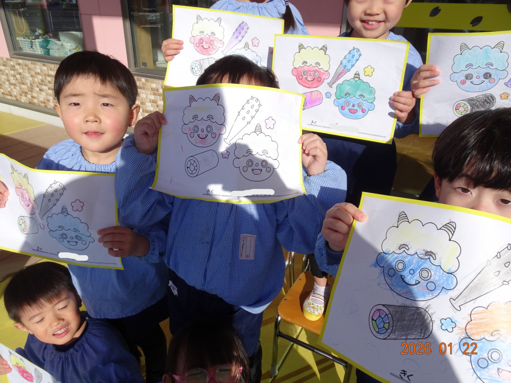 さくら保育園のお向かいにあるセブンイレブンいわき下好間店さんよりこの度、「さくら保育園の園児さんたちに節分の塗り絵をしてほしい」との依頼があり用紙をいただきましたので、3歳児クラスきく組、4歳児クラスゆり組、5歳児クラスひまわり組の子どもたちが塗り絵をしました。