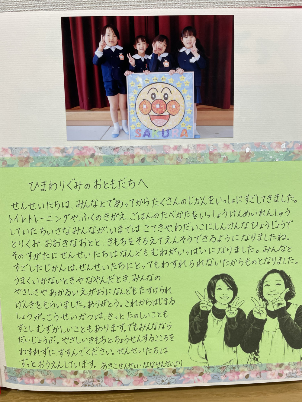 5歳児クラスひまわり組の令和7年度卒園アルバム(おもいでアルバム)を公開。