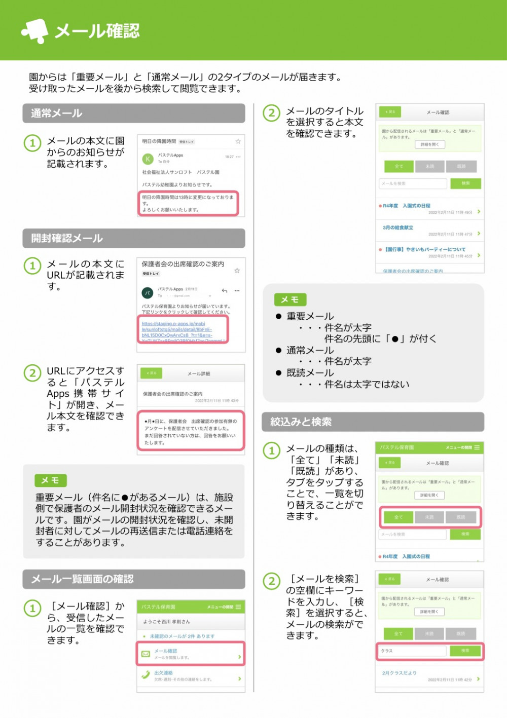 リンク先を開くことで、さくら保育園で[既読]が確認できます。開かないと、メールが未読状態となります。